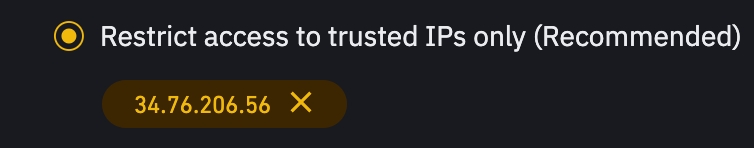 Under the IP restrictions access, please select Restrict access to trusted IPs only, discard the 0.0.0.0 IP address, and add the following IP: